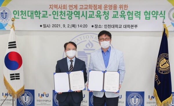 [대학저널 임지연 기자] 인천대학교(총장 박종태)는 2일 인천시교육청과 지역사회 연계 고교학점제 운영을 위한 교육협력 협약과 인천지역 학생들의 학습역량 및 진로 개척역량 강화를 위한 협약 등 2건의 협약을 체결했다.