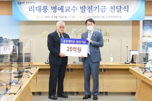 중앙대는 리 명예교수가 13일 열린 발전기금 전달식을 통해 20억원을 기부했다고 밝혔다.