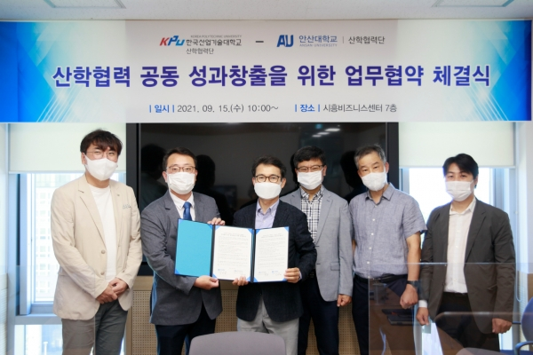 [대학저널 황혜원 기자] 한국산업기술대학교 산학협력단은 15일 안산대 산학협력단과 산학협력 공동성과 창출을 위한 업무협약식을 체결했다고 밝혔다.