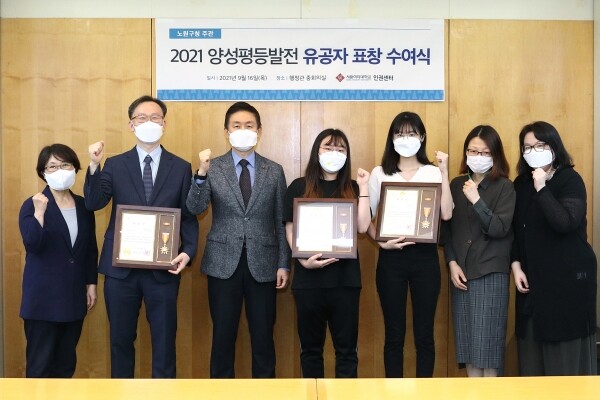 [대학저널 황혜원 기자] 서울여자대학교(총장 승현우)는 16일 김지훈 교양대학 교학팀장과 디지털미디어학과 이지은·조윤서씨가 서울 노원구가 지난 1~7일 양성평등주간을 맞아 실시한 양성평등 유공자 표창식에서 양성평등향상유공(개인/단체) 부문에 선정됐다고 밝혔다.