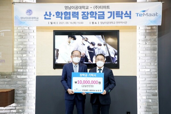 [대학저널 오혜민 기자] 영남이공대학교(총장 이재용)는 티마트가 신종 코로나바이러스 감염증(코로나19)으로 학업에 어려움을 겪고 있는 학생들의 교육지원을 위해 장학금 1000만 원을 기탁했다고 17일 밝혔다.