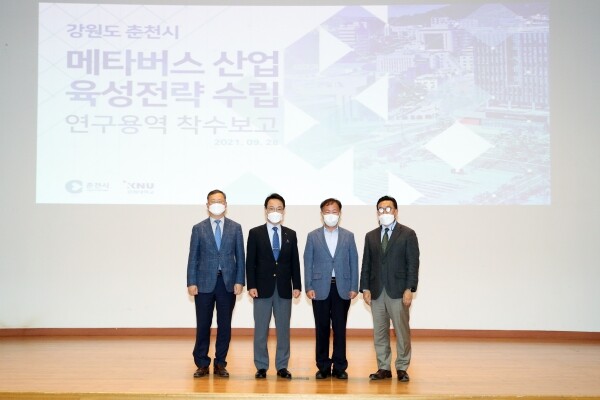 이번 연구용역 착수보고회에서는 김헌영 강원대 총장과 이재수 춘천시장, 김흥성 강원정보문화진흥원장 등 관련기관 관계자 등이 참석해 메타버스 산업의 국내외 시장 동향과 춘천시 메타버스 산업 활성화 방향 등에 대해 다양한 의견을 나눴다.
