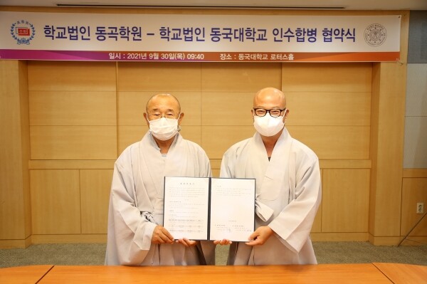 [대학저널 오혜민 기자] 동국대학교(이사장 성우스님)는 30일 학교법인 동곡학원과 인수합병 협약을 체결했다고 밝혔다.