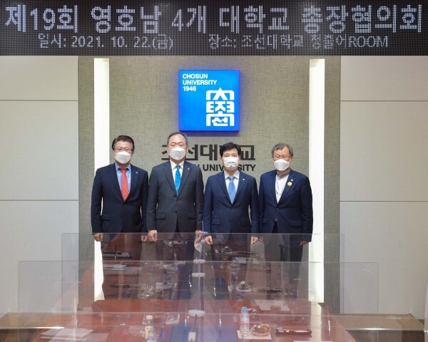 24일 조선대에 따르면 22일 조선대 본관 2층 청출어룸(靑出於ROOM)에서 열린 협의회는 영·호남 4개 대학 총장을 비롯해 김영선 광주광역시대학발전협력단장 및 관계자 등이 참석한 가운데 진행됐다.
