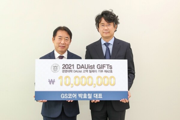 [대학저널 오혜민 기자] 동아대학교(총장 이해우)는 박효철 GS코어 대표가 경영대학 발전과 교육혁신을 위해 다우이스트 기프트(DAUist Gift) 고액 릴레이 기부 제42호 주자로 1000만 원을 기부했다고 28일 밝혔다.