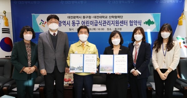 [대학저널 임지연 기자] 대전대학교(총장 윤여표)는 지난 28일 산학협력단 대전광역시 동구 어린이급식관리지원센터 위탁운영기관으로 선정돼 동구와 ‘대전시 동구 어린이급식관리지원센터 위·수탁 협약’을 체결했다고 29일 밝혔다.