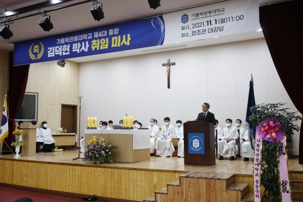 [대학저널 백두산 기자] 가톨릭관동대학교(총장 김덕현)는 1일 제4대 총장 김덕현 박사 취임 미사 및 취임식을 개최했다고 밝혔다.