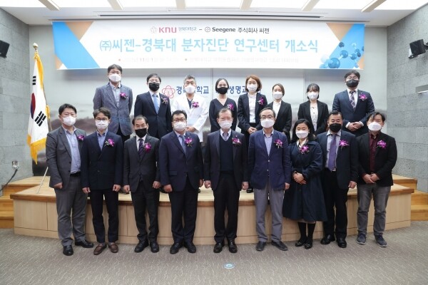 1일 경북대에 따르면 경북대 칠곡메디캠퍼스 의과대학은 지난해 8월 씨젠과 체결한 ‘감염병 진단분야 연구개발·사업화 분야에 대한 기술협력과 정보교류’ 업무협약에 따라 ‘씨젠-경북대 분자진단 연구센터(이하 연구센터)’ 개소식을 가졌다. 연구센터를 개소함에 따라 씨젠은 진단시약 개발에 필요한 인프라와 개발 가이드라인을 경북대에 제공하고, 경북대는 시약 아이디어를 발굴해 직접 개발에 나선다.