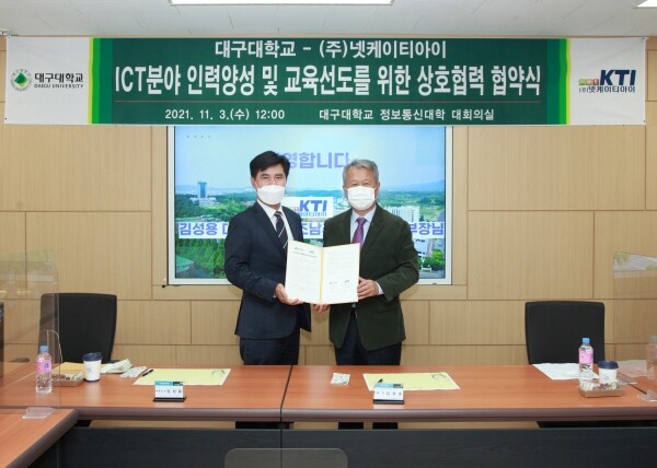 [대학저널 오혜민 기자] 대구대학교(총장 김상호)는 IT 전문기업 넷케이티아이와 지난 3일 정보통신기술(ICT)분야 인력 양성과 교육 선도를 위한 업무협약을 체결했다고 5일 밝혔다.