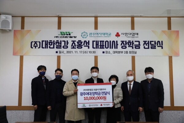 [대학저널 황혜원 기자] 광주여자대학교(총장 이선재)는 17일 조홍석 대한철강 대표이사로부터 장학금 1천만원을 기탁받았다고 밝혔다.