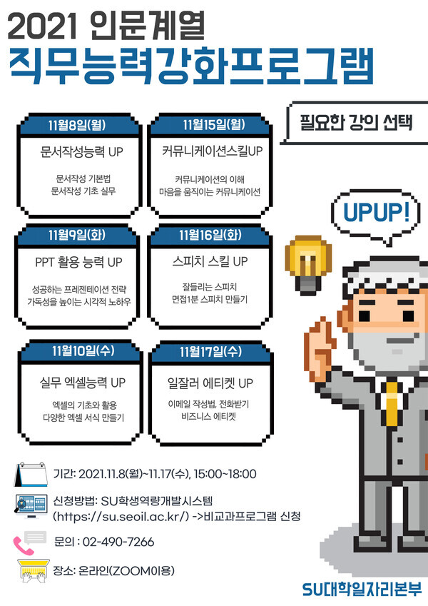 서일대 SU대학일자리본부는 최근 ‘2021 인문계열 직무능력 강화 프로그램’을 가졌다고 3일 밝혔다.
