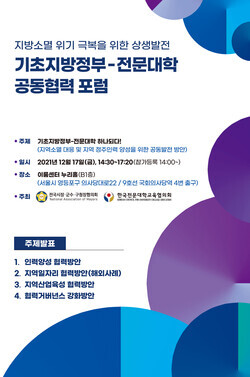 한국전문대학교육협의회와 전국시장군수구청장협의회는 17일 오후 2시 30분부터 서울 여의도 이룸센터 누리홀에서 지방소멸 대응 및 지역정주인력 양성을 위한 '기초지방정부-전문대학 공동협력 포럼'을 개최한다고 16일 밝혔다.