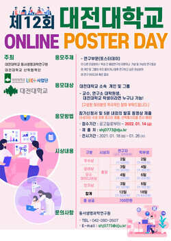 [대학저널 오혜민 기자] 대전대학교(총장 윤여표)는 동서생명과학연구원과 산학협력단이 제12회 온라인 포스터 데이 공모전을 주최한다고 5일 밝혔다.