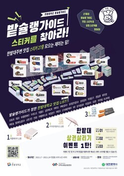 오는 24일부터 시작되는 2차 이벤트에서는 한밭대 학생을 대상으로 한밭대 인근 맛집 27종의 캐릭터 스티커 중 10종 이상을 모은 후 체험수기를 응모한 학생에게 부상을 제공한다.