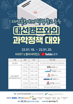 과학기술 현장의 목소리를 대변하는 학계·시민단체·언론·출연연 등에 소속된 패널이 참여해 과학기술에 대한 후보자들의 비전과 정책도 살펴본다.