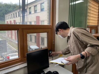강원대 그린리모델링사업단 소속 학생이 사업대상지 현장조사를 하고 있다. 사진=강원대 제공