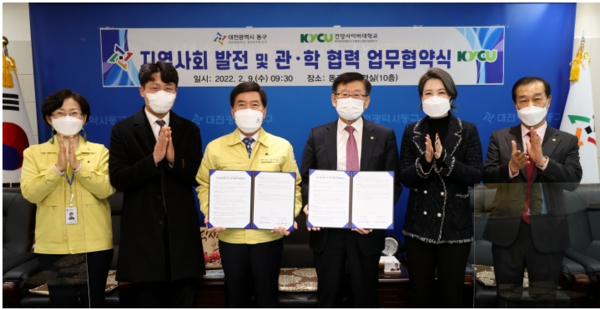 [대학저널 이승환 기자] 건양사이버대학교는 대전광역시 동구와 지역사회 발전과 관학 상호협력 체계 구축을 위한 업무협약을 체결했다고 9일 밝혔다.