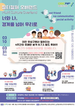 행사에는 대전에 거주하는 다문화 공동체에 관심있는 내국인과 외국인 모두 참여할 수 있으며, 카카오채널 ‘한밭대_다문화 오버랜드’를 검색해 신청하면 된다.