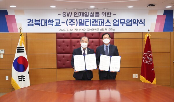 [대학저널 임지연 기자] 경북대학교는 10일 멀티캠퍼스 SW 인재 양성을 위한 업무협약을 체결하고, SW 분야 핵심 실무인재 양성과 SW 관련 교육과정 개발․운영을 위해 상호 공동 노력하기로 했다고 밝혔다.
