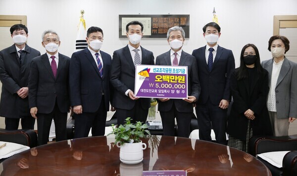 목원대는 대전도안교회(예장통합) 양형주 담임목사가 선교조각공원 조성기금 500만 원을 전달했다고 11일 밝혔다.