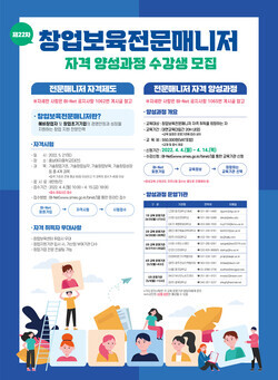 창업보육전문매니저 자격 양성과정은 BI-Net을 통해 오는 14일까지 신청할 수 있으며, 자세한 내용은 한국창업보육협회 공고를 참고하면 된다.