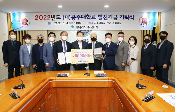 공주대에 따르면 권길주 하나카드 대표는 공주대 발전과 인재양성 등 교수 연구활동을 지원하기 위해 발전기금을 기탁했다.