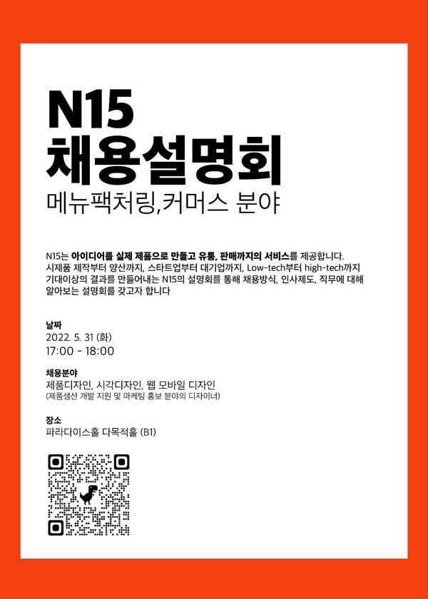 N15는 올해 리빙디자인과 제품디자인, 시각디자인, 웹 모바일 디자인 분야에서 제품생산 개발 지원과 마케팅 홍보 분야의 디자이너를 채용한다.