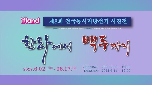상명대는 디지털이미지연구소와 대학원 디지털이미지학과가 2~17일 SKT ifland 메타버스 갤러리에서 제8회 전국동시지방선거 사진전 ‘한라에서 백두까지’를 연다고 2일 밝혔다.