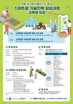 분야별 강사진은 한국농수산대학과 국립농업과학원 전문가 등으로 구성되며, 도내 대학 학생과 미취업자, 관련산업 종사자라면 신청할 수 있다.