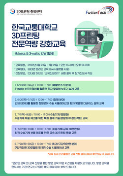 [대학저널 오혜민 기자] 한국교통대학교는 3D프린팅충북센터가 ‘3D프린팅 전문역량 강화 교육’ 프로그램을 운영한다고 24일 밝혔다.