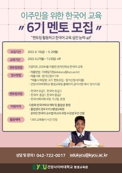박미정 평생교육원장은 “이 프로그램을 통해 이주민 학습자는 한국어 활용 기회를 얻고, 멘토는 한국어 교수활동을 학습·실습해 한국어 교사 자질을 함양시킬 수 있는 좋은 기회가 되기를 바란다”고 말했다.