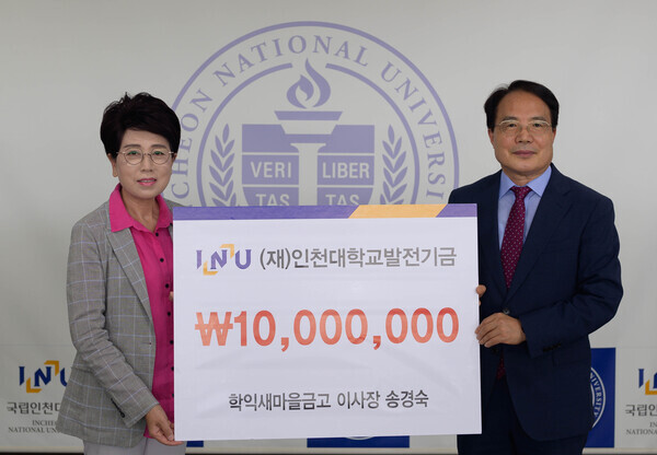 [대학저널 오혜민 기자] 인천대학교는 학익새마을금고 송경숙 이사장이 지난 12일 인천대학교발전기금에 1000만원을 기탁했다고 13일 밝혔다.
