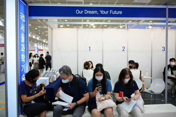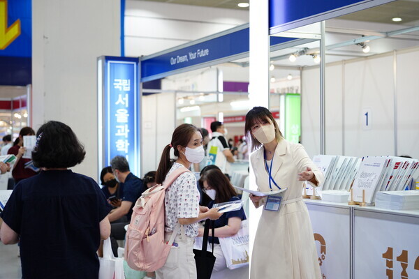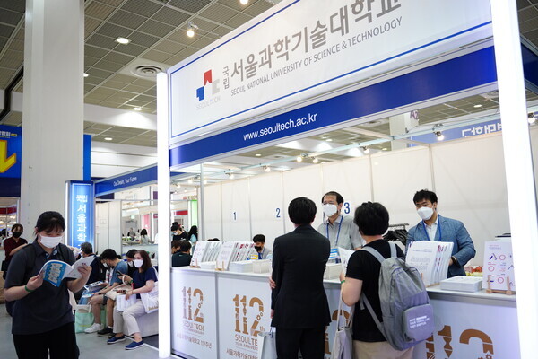 [대학저널 황혜원 기자] 한국대학교육협의회가 주최하는 '2023학년도 수시 입학정보박람회'(이하 수시박람회)가 20일부터 23일까지 서울 삼성동 코엑스에서 열린다. 이번 수시박람회에는 전국 149개 대학이 참가한다. 현재 수험생들이 대학부스에서 입시 상담을 진행하고 있다. 사진은 서울과학기술대 상담부스 모습.