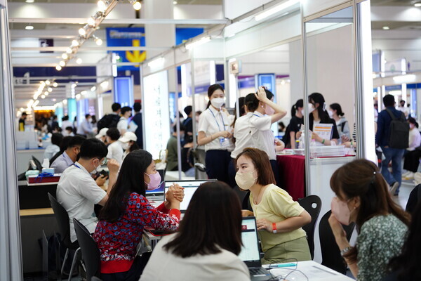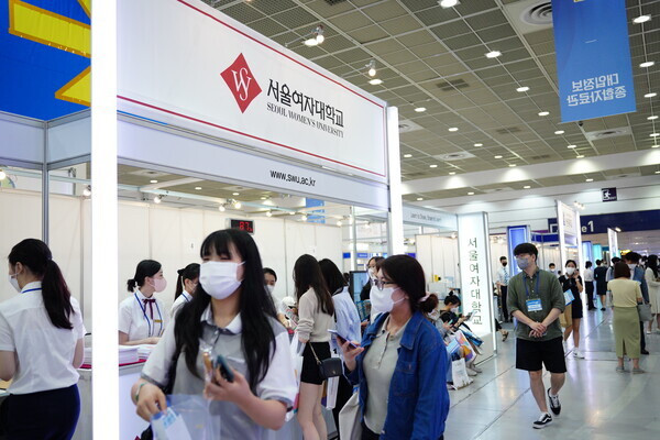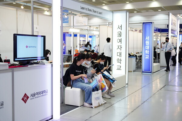 [대학저널 황혜원 기자] 한국대학교육협의회가 주최하는 '2023학년도 수시 입학정보박람회'(이하 수시박람회)가 20일부터 23일까지 서울 삼성동 코엑스에서 열린다. 이번 수시박람회에는 전국 149개 대학이 참가한다. 현재 수험생들이 대학부스에서 입시 상담을 진행하고 있다. 사진은 서울여대 상담부스 모습.