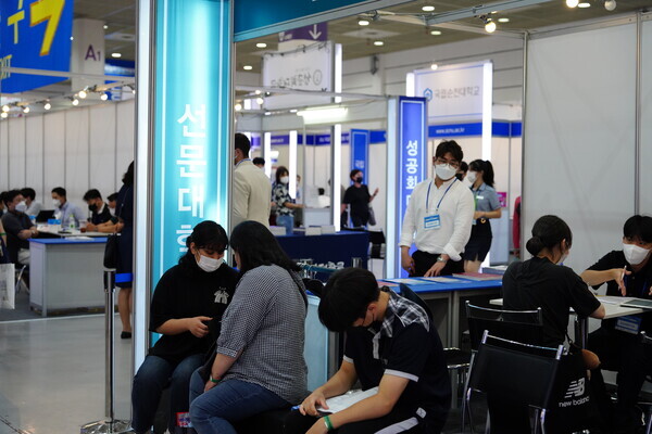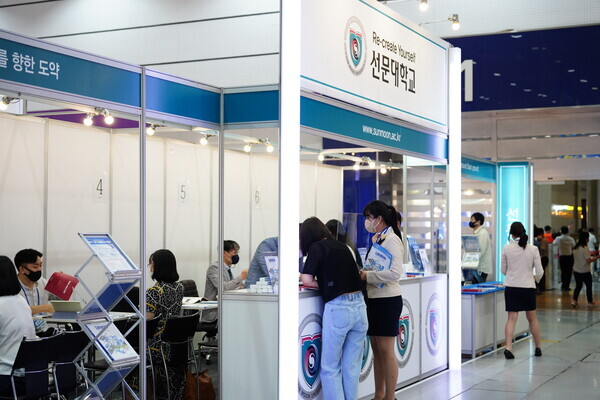 [대학저널 황혜원 기자] 한국대학교육협의회가 주최하는 '2023학년도 수시 입학정보박람회'(이하 수시박람회)가 20일부터 23일까지 서울 삼성동 코엑스에서 열린다. 이번 수시박람회에는 전국 149개 대학이 참가한다. 현재 수험생들이 대학부스에서 입시 상담을 진행하고 있다. 사진은 선문대 상담부스 모습.