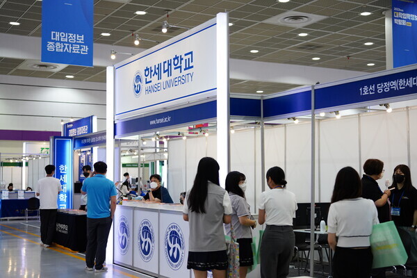 [대학저널 황혜원 기자] 한국대학교육협의회가 주최하는 '2023학년도 수시 입학정보박람회'(이하 수시박람회)가 20일부터 23일까지 서울 삼성동 코엑스에서 열린다. 이번 수시박람회에는 전국 149개 대학이 참가한다. 현재 수험생들이 대학부스에서 입시 상담을 진행하고 있다. 사진은 한세대 상담부스 모습.