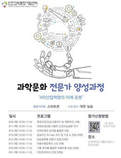 [대학저널 오혜민 기자] 인천대학교 인천과학문화거점센터는 오는 9일부터 9월 1일까지 로봇을 주제로 과학문화전문가 양성과정을 운영한다고 8일 밝혔다.